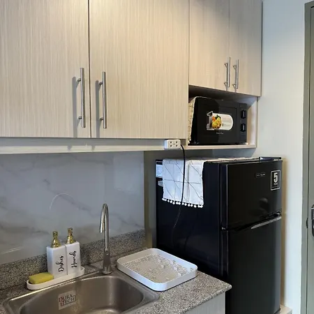 An equipped kitchenette is provided at Modern And Cozy Studio Unit With Balcony Near Ayala Center Modern And Cozy Studio Unit With Balcony Near Ayala Center is within easy reach of Cebu - balamban - asturias - tuburan v-hire terminal bus station.